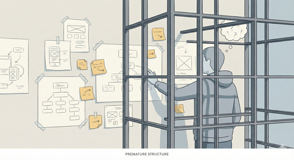 型がない段階で入れると、ツールが思考の足を引っ張ります。